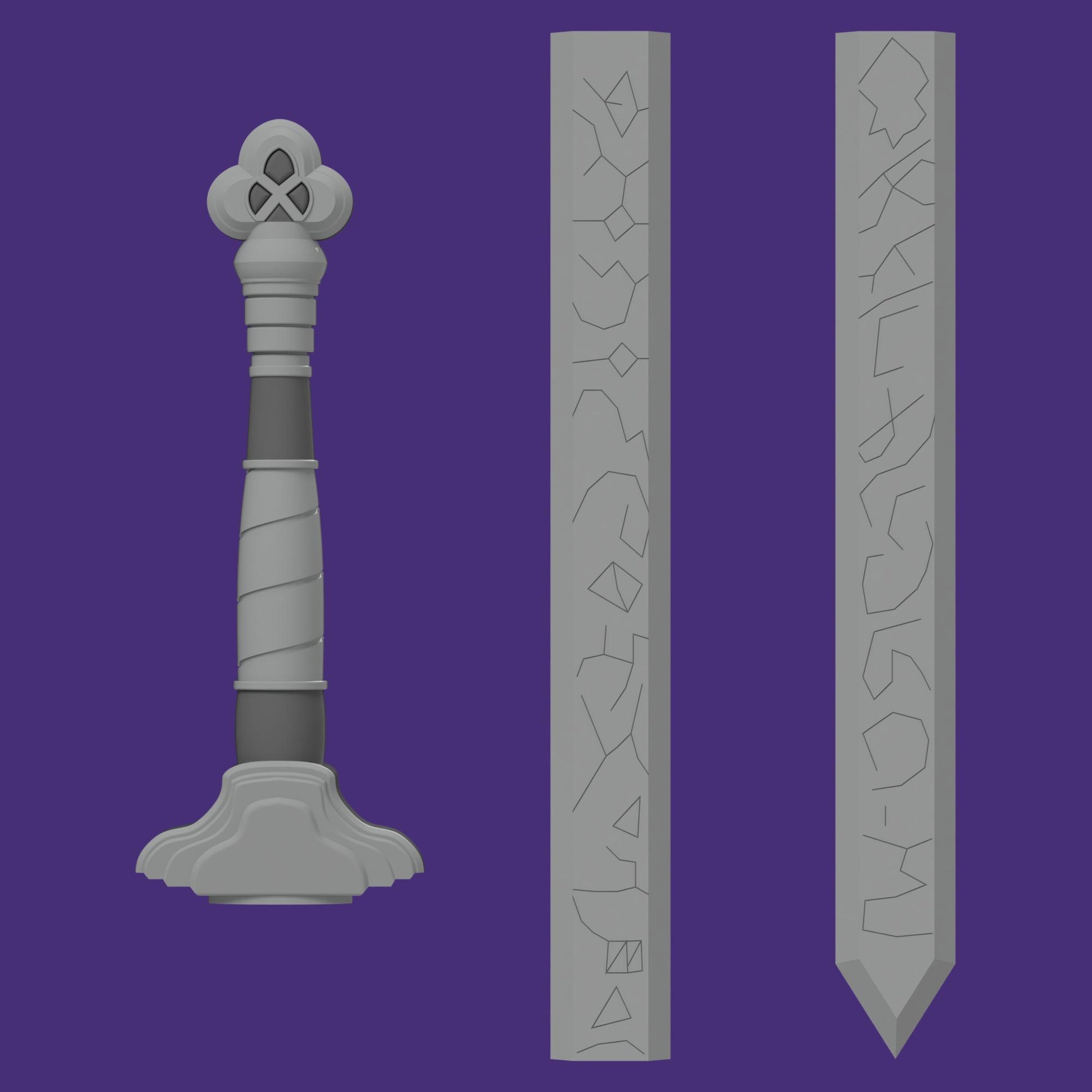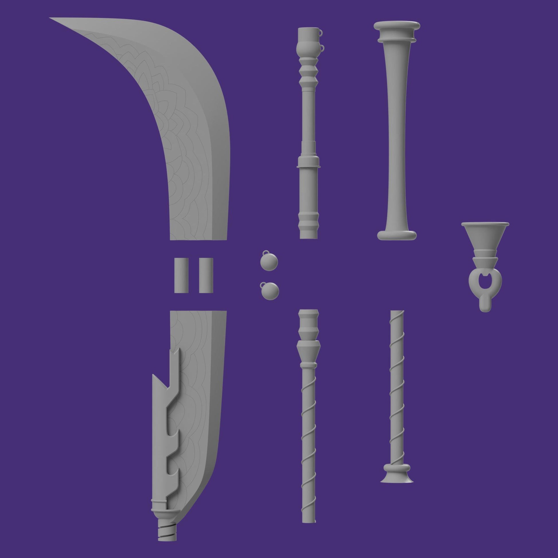 These are the 3D printable files for the main weapons that Huntrix uses in Kpop Demon hunters. Each file comes in a separate folder, and broken up to make printing/post processing smoother. Mira and Rumi's weapons also come with holes in the center to allow for a dowel rod to be placed for extra post-print support.